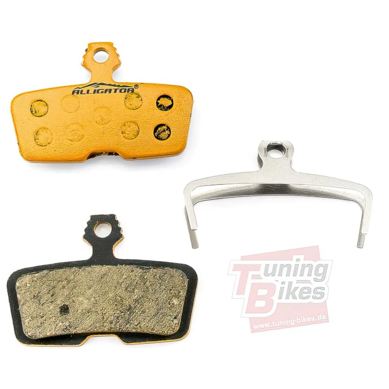 Die Avid Code gehört zu den leistungsfähigsten Bremsen und als ein Biker, der stets auf der Suche nach dem Optimum ist, kommen für dich auch beim Bremsbelag keine Kompromisse infrage. Du legst großen Wert auf eine unter allen Voraussetzungen gleichmäßige Bremsperformance und eine geringe Geräuschentwicklung? Diesen hohen Anforderungen entsprechen die rein organischen Bremsbeläge von Alligator in vollem Umfang, denn sie stellen in vielerlei Hinischt eine interessante Alternative zum Originalbelag dar. Mit diesen Belägen kannst du deiner Bremse auf einfache Art und ohne großen Zusatzaufwand zu mehr Leistung und Standfestigkeit verhelfen und obendrein die Bremsscheibe schonen und deren Lebensdauer verlängern. Durch ihre rein organische Auslegung bietet dieser Belag insbesondere den Vorteil, dass er nicht warm gebremst werden mss und darüber hinaus unter allen Bedingungen eine stabile Bremsperformance bietet, während metallische, bzw. semimetallische Beläge hier im Nachteil sind, da sie ihre volle Leistung erst bei einer bestimmten Betriebstemperatur zur Verfügung stellen können. Ein weiterer Vorteil dieses Belagkonzepts ist die längere Lebensdauer der Bremsscheibe, während die Beläge selbst im Vergleich zu metallischen Belägen einem etwas höheren Verschleiß unterliegen.
