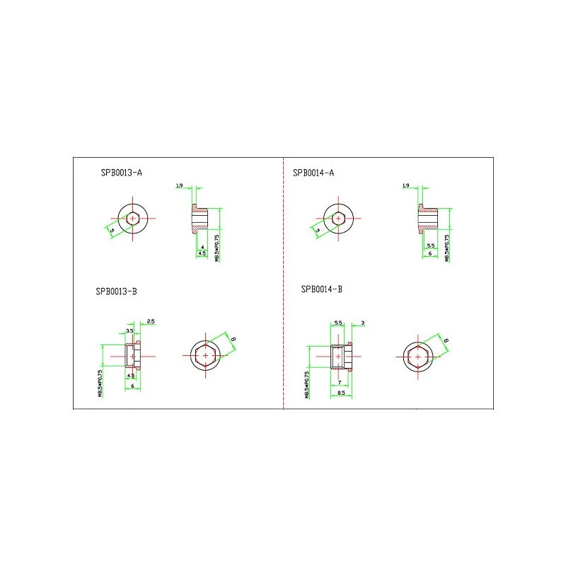 - B – Mutter (ohne Kopf / nur Gewinde): 7 mm / 5,5 mm