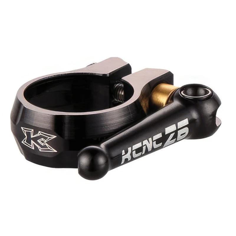 Die für eine schnelle und einfache Verstellung der Sattelhöhe mit einem Schnellspanner ausgestattete SC12 Sattelklemme von KCNC wird aus extrem haltbarem 6061 Aluminium im präzisen CNC-Fräsverfahren hergestellt und macht nicht zuletzt aufgrund ihrer minimalistischen Optik an jedem MTB eine gute Figur. Die mit dem Klemmhebel aus Aluminium verbundene Einstellschraube wird aus hochwertigem, nichtrostendem Edelstahl hergestellt und lässt eine präzise Anpassung der Klemmkraft zu. Für eine leichte Bedienbarkeit des Spannhebels ist die Klemme mit einer Lagerschale aus Messing ausgestattet und in verschiedenen Durchmessern und Farben erhältlich.
