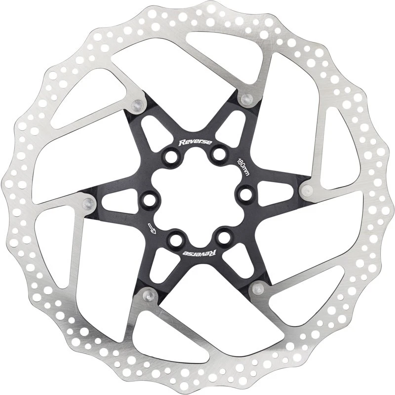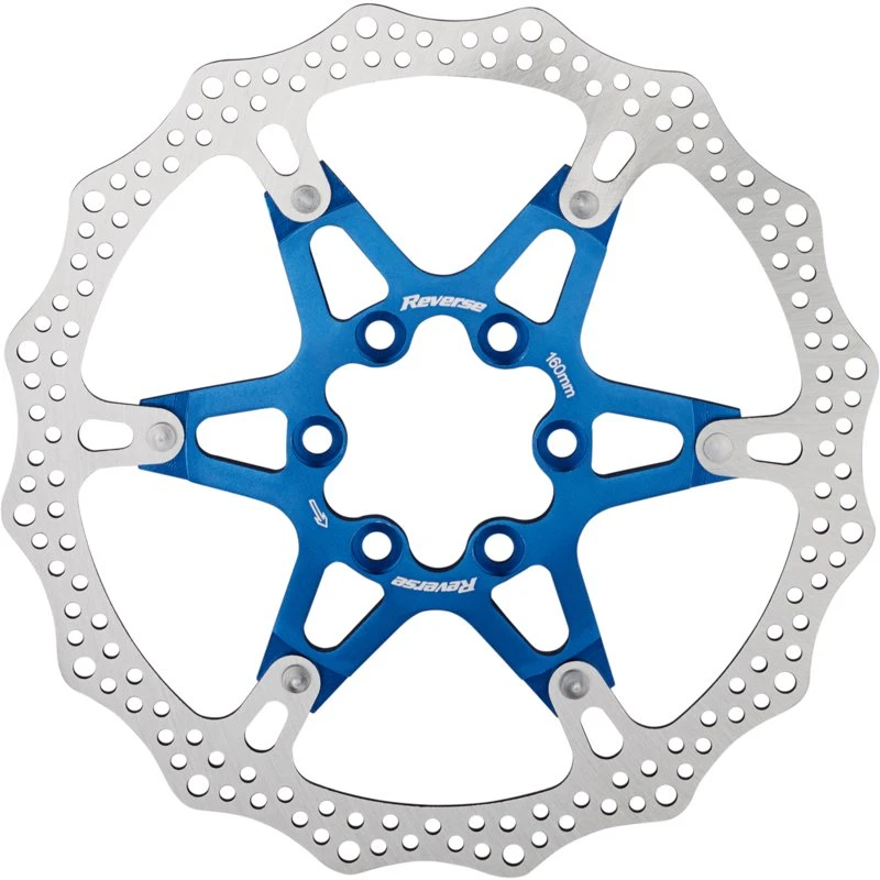 Zweiteilige Bremsscheiben (Floating Discs) bestehen in der Regel aus einem Reibring aus Edelstahl und einem Aluminium-Spider, die über eine Vernietung kraftschlüssig mit einander verbunden sind. Eine solche Bauform bietet außer einem geringfügig höheren Gewicht zahlreiche Vorteile und kann ihre Stärken insbesondere dann ausspielen, wenn beim Bremsen extrem hohe Temperaturen auftreten. In einem solchen Fall bewirkt die zweiteilige Bauweise, dass sich der Reibring aus Edelstahl im Vergleich zu einer einteiligen Bremsscheibe deutlich weniger stark verziehen kann. Dieser Effekt wirkt sich deutlich spürbar auf den Rundlauf der Scheibe aus und führt letztendlich dazu, dass beim Bremsen weniger Vibrationen auftreten und der Bremsvorgang insgesamt harmonischer und gleichmäßiger abläuft. Dies ist insbesondere unter extremen technischen Bedingungen ein unschätzbarer Vorteil und sorgt für mehr Sicherheit. Die geteilte Bauform dieser Scheiben verhindert überdies eine übermäßig starke Wärmeübertragung vom Reibring auf den Nabenkörper und die darin befindlichen Lager, was sich wiederum positiv auf die Lebensdauer und den Leichtlauf der Naben auswirkt. Die zweiteiligen Reverse-Bremsscheiben sind mit in unterschiedlichen Farben eloxierten Spidern erhältlich, wodurch sie an jedem Bike nicht nur für technische Vorteile, sondern auch für einen ganz besonderen optischen Auftritt sorgen.