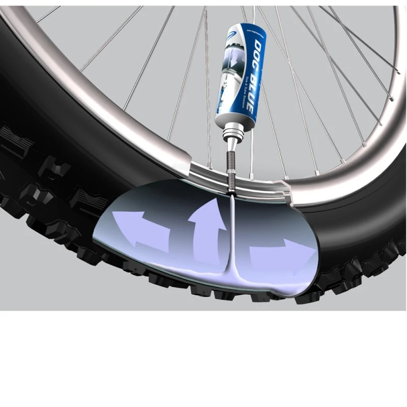 Diese vom Tubeless-Pionier und Marktführer Stan’s No Tubes für Schwalbe produzierte Dichtmilch eignet sich für verschiedenste Anwendungsbereiche. Zum einen ist es möglich, mit Doc Blue und dafür geeigneten Reifentypen (z.B. TL-Ready, TL-Easy) ein komplett schlauchloses System aufzubauen, oder aber für einen erweiterten Pannenschutz etwas Dichtmilch in den Schlauch eines herkömmlichen Laufrades zu füllen, um für den Fall der Fälle gewappnet zu sein. Doc Blue ist eine biologisch abbaubare, latexbasierte Dichtmilch, die in der Lage ist, innerhalb kürzester Zeit kleine Undichtigkeiten im Reifen oder Schlauch wirkungsvoll und nachhaltig zu verschließen. Im Idealfall merkt der Fahrer davon nichts und kann seine Fahrt normal fortsetzen. Für einen Reifen / Schlauch werden abhängig von der Reifendimension 30-60 ml Dichtmilch benötigt. Doc Blue kann mehrmals erneuert werden und wirkt je nach Einsatzbereich und Bedingungen zwischen 2-7 Monaten. Danach trocknet die Dichtmilch zu einem Gummifilm. Doc Blue ist nur geeignet für Ventile / Schläuche mit auswechselbarem Ventileinsatz und kann nicht zur Reparatur von groben Defekten wie Schnitte oder Platzer verwendet werden. Mit Doc Blue ist es möglich beim Aufbau eines kpl. schlauchlosen Laufrades trotz eines geringeren Reifendrucks eine sehr hohe Pannensicherheit, einen spürbar besseren Gripp, sowie einen deutlich reduzierten Rollwiderstand zu erzielen und ist daher insbesondere bei MTB-Wettbewerbsfahrern sehr beliebt.