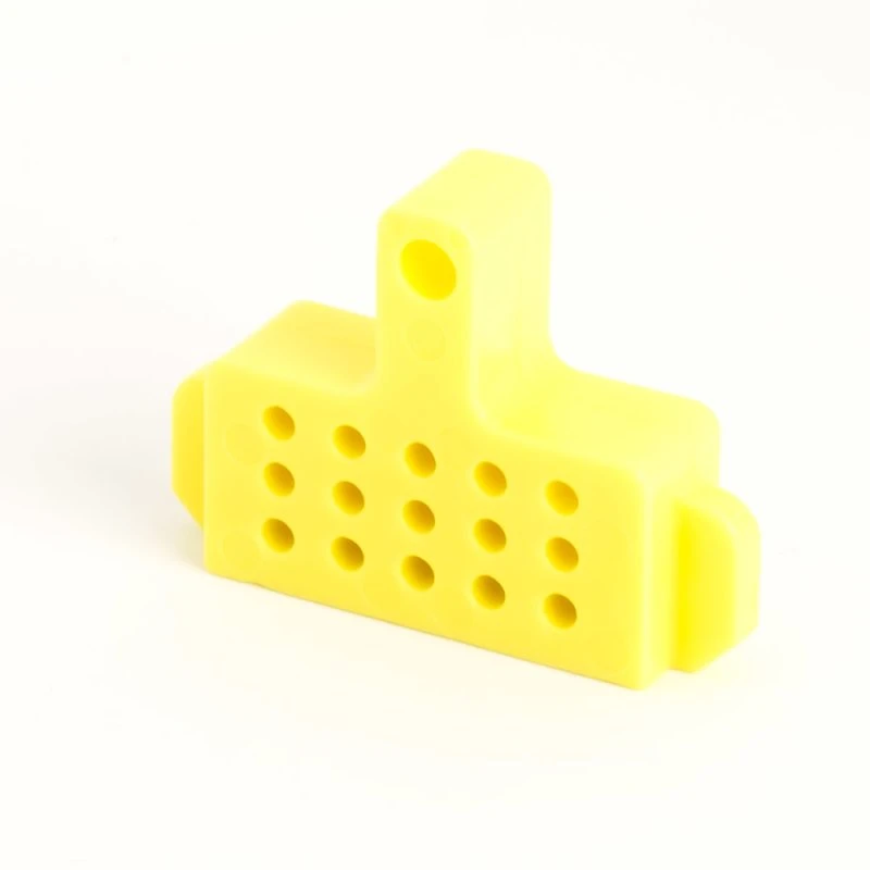 Distanz-Stück für die Entlüftung einer Shimano 2-Kolben-Scheibenbremse. Die Bremsbeläge werden hierfür aus dem Bremssattel ausgebaut, die Kolben mit einem geeigneten Gegenstand zurück in den Sattel gedrückt und der Bleedblock eingesetzt. Erst wenn die Kolben mit dem Bleed-Spacer im Endanschlag gehalten werden ist ein fehlerfreies entlüften möglich.