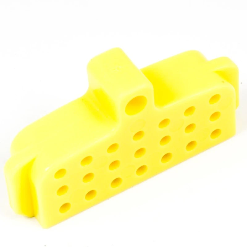 Distanz-Stück für die Entlüftung einer Shimano 4-Kolben-Scheibenbremse. Die Bremsbeläge werden hierfür aus dem Bremssattel ausgebaut, die Kolben mit einem geeigneten Gegenstand zurück in den Sattel gedrückt und der Bleedblock eingesetzt. Erst wenn die Kolben mit dem Bleed-Spacer im Endanschlag gehalten werden ist ein fehlerfreies entlüften möglich.
