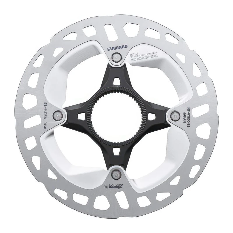 Bei der in unterschiedlichen Durchmessern erhältlichen RT-MT8000 Bremsscheibe von Shimano kommt eine Reihe verschiedener Technologien zum Einsatz. Das Ergebnis ist eine extrem leichte Bremsscheibe mit weiter verbesserten Wärmemanagement und daraus resultierendem reduzierten Fading. Möglich wird dies durch die Shimano Ice-Technologie, bei welcher der Rotor aus einem leichten Kern aus Aluminium bestehet, der an den Außenseiten mit einer Edelstahlschicht versehen ist. Auf Basis dieser Sandwich-Bauweise und im Zusammenspiel mit den speziell geformten Luftleitblechen unterhalb des Reibrings kann die beim Bremsen entstehende Wärme noch effizienter abgeführt werden, wodurch ein Fading deutlich später eintritt und der Belagverschleiß erheblich reduziert werden konnte. Durch die zweiteilige Bauweise, bei welcher der Reibring mit dem aus Aluminium gefertigten Spider vernietet wird, wird ein Verziehen der Scheibe unter Wärmeeinwirkung erfolgreich verhindert und auch die Geräuschentwicklung konnte reduziert werden.