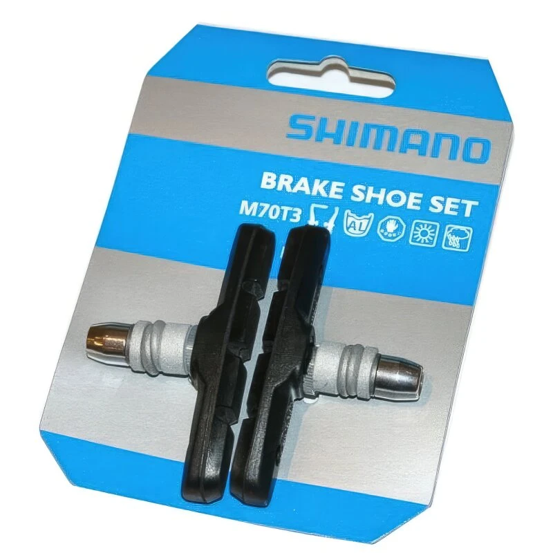 Zur Erzielung einer guten Bremsleistung kommt es auf die perfekte Materialpaarung zwischen Belag und Felge an. Mit dem M70T3 von Shimano ergibt sich eine hervorragende Konstellation, die für überzeugende Verzögerung insbesondere unter nassen Bedingungen sorgt. Das speziell auf Aluminiumfelgen und nasse Bedingungen abgestimmte Material ist dabei nicht nur besonders griffig, sondern auch leise und langlebig. Die einteilig ausgeführte Konstruktion mit geschraubtem Schaft erlaubt keinen Tausch des Belags im Tragkörper (Non Cartrige System)